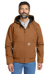 An update to a Carhartt icon-the J130-this dependable, durable jacket was created with input from the hardworking people who wear our gear day in and day out. 12-ounce, 100% ring spun cotton washed duck Quilted nylon lining for easy on and off; 80-gram, 100% polyester 3M Thinsulate featherless insulation for warmth without the weight Attached quilted three-piece hood with drawcord closure Full-length brass front zipper Two interior pockets: one zippered, one hook and loop Two large hand pockets Pen stall in right pocket Locker loop Elbow pleats for ease of movement Rib knit cuffs and waistband Carhartt-strong, triple-stitched main seams Carhartt label sewn on left pocket Carhartt Warmth Rating Earned: Level 3â¿¿Warmest Loose fit